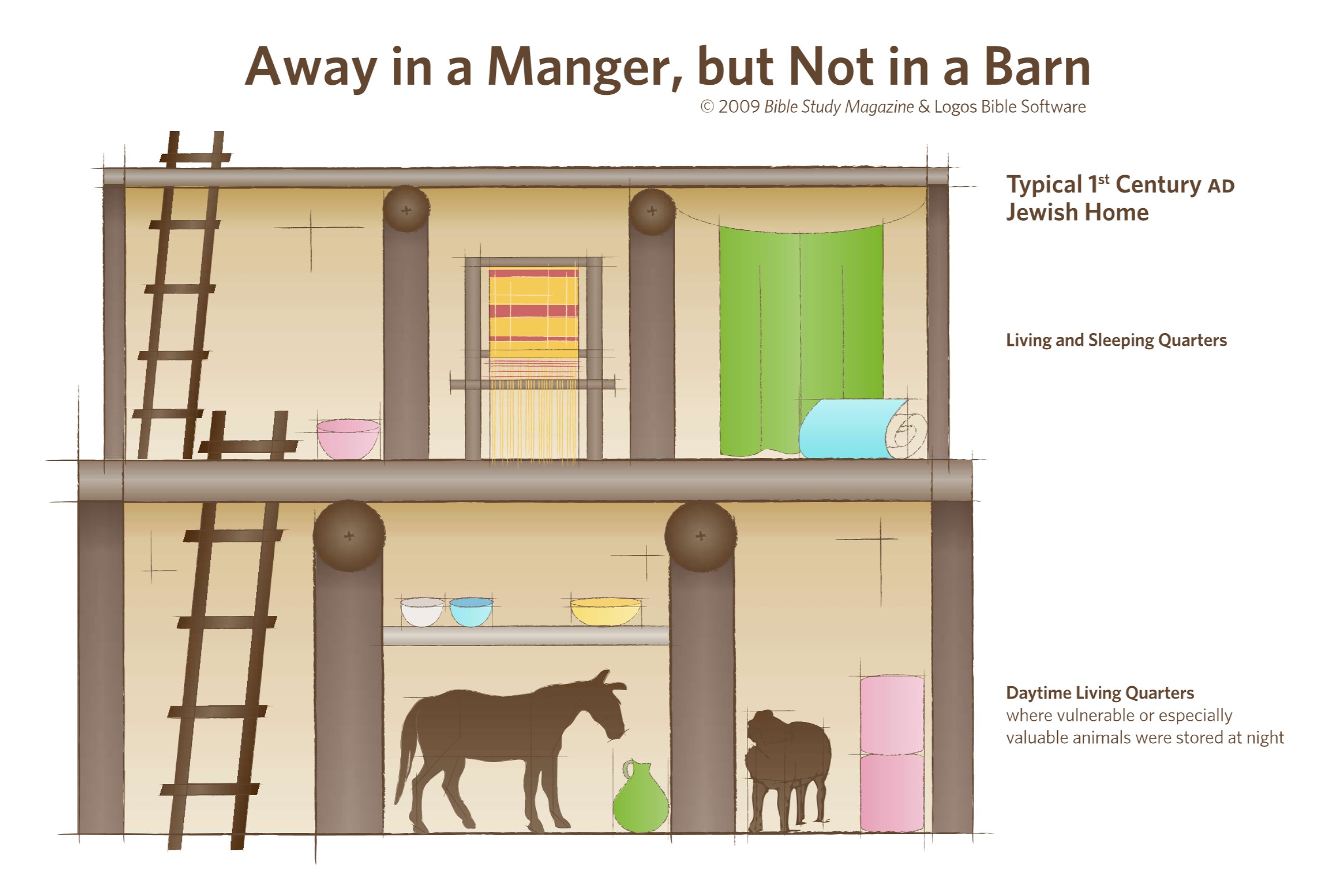 Yes, there was a manger (an animal feeding trough) in which the newborn Jesus was placed. However, while we relate feeding troughs to barns in our modern thinking, this was not the reality of 1st Century Israel. The diagram below from Logos Bible Software gives us a better understanding of a typical Jewish home at the time of Christ’s birth.